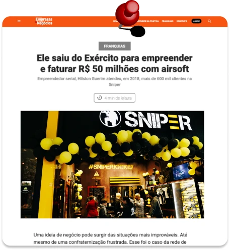 A franquia SNIPER foi idealizada em 2015 para melhorar as opções de entretenimento em shoppings centers. Com um modelo de negócio totalmente inovador e operacionalmente formatado para atender a um grande volume de público, nossa marca se tornou, em pouco tempo, a maior rede de entretenimento em shoppings no Brasil e no mundo, com reconhecimento inclusive na revista FORBES, entre outras das principais mídias mais relevantes na área de negócios. Diferentemente de várias marcas com operações em shoppings centers que, na pandemia, vieram a extinguir-se, a franquia SNIPER, obviamente, sofreu com operações paradas por mais de um ano sem funcionamento.